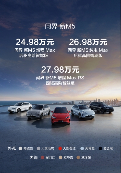 24.98 萬(wàn)元起,AITO 問(wèn)界新 M5 正式發(fā)布:全系標配華為高階智駕