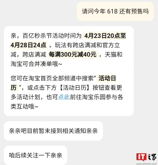 消息稱(chēng)淘寶、京東今年均取消 618 預售,5 月下旬現貨開(kāi)售