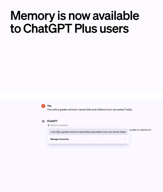 OpenAI 向 ChatGPT Plus 用戶(hù)開(kāi)放“記憶”功能