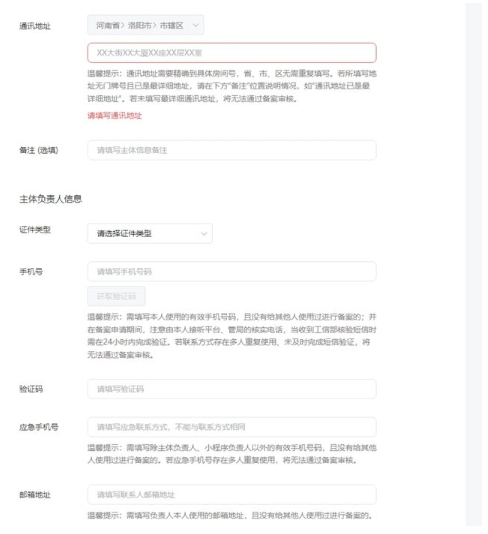 3、錄入營(yíng)業(yè)執照登記的地址、營(yíng)業(yè)執照的法人信息,包含2個(gè)手機號和1個(gè)郵箱賬號。