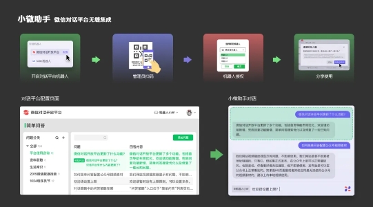 官方表示,小微助手和微信對話(huà)開(kāi)放平臺無(wú)縫集成,用戶(hù)可以使用微信對話(huà)開(kāi)放平臺配置相關(guān)領(lǐng)域知識,通過(guò)能力配置后的小微助手將提供相應領(lǐng)域的回答。例如,開(kāi)發(fā)者可以借此獲得增強的客服消息體驗,“小微助手”綁定微信對話(huà)開(kāi)放平臺的機器人客服權限后,收到客服消息將提示開(kāi)發(fā)者進(jìn)行處理。