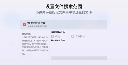 小微助手提供 Windows、macOS 雙端安裝包,用戶(hù)可根據自己的系統平臺選擇安裝包下載使用。打開(kāi) App 會(huì )開(kāi)始簡(jiǎn)單的引導,用戶(hù)可以對該應用的搜索權限進(jìn)行限制,以及呼出的快捷方式進(jìn)行設定。